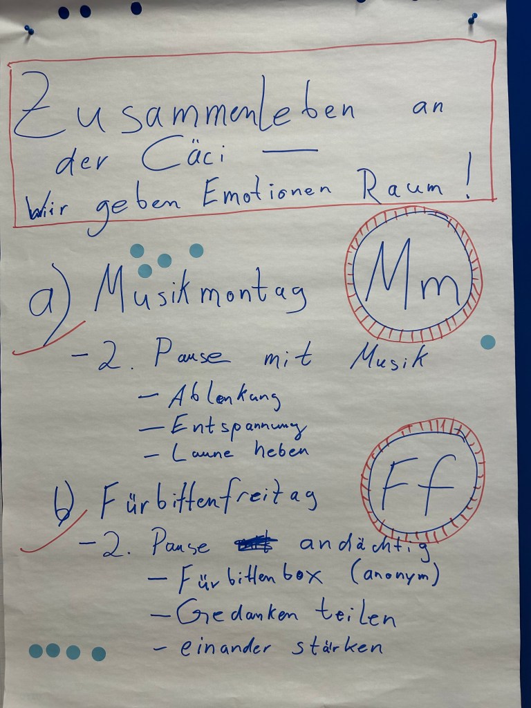 „Das Blaue Forum“ ist ein Schulentwicklungsformat, bei dem Lehrkräfte, Schülerschaft und Eltern eingeladen sind, neue Ideen für die Cäcilienschule zu entwickeln (mehr dazu hier).